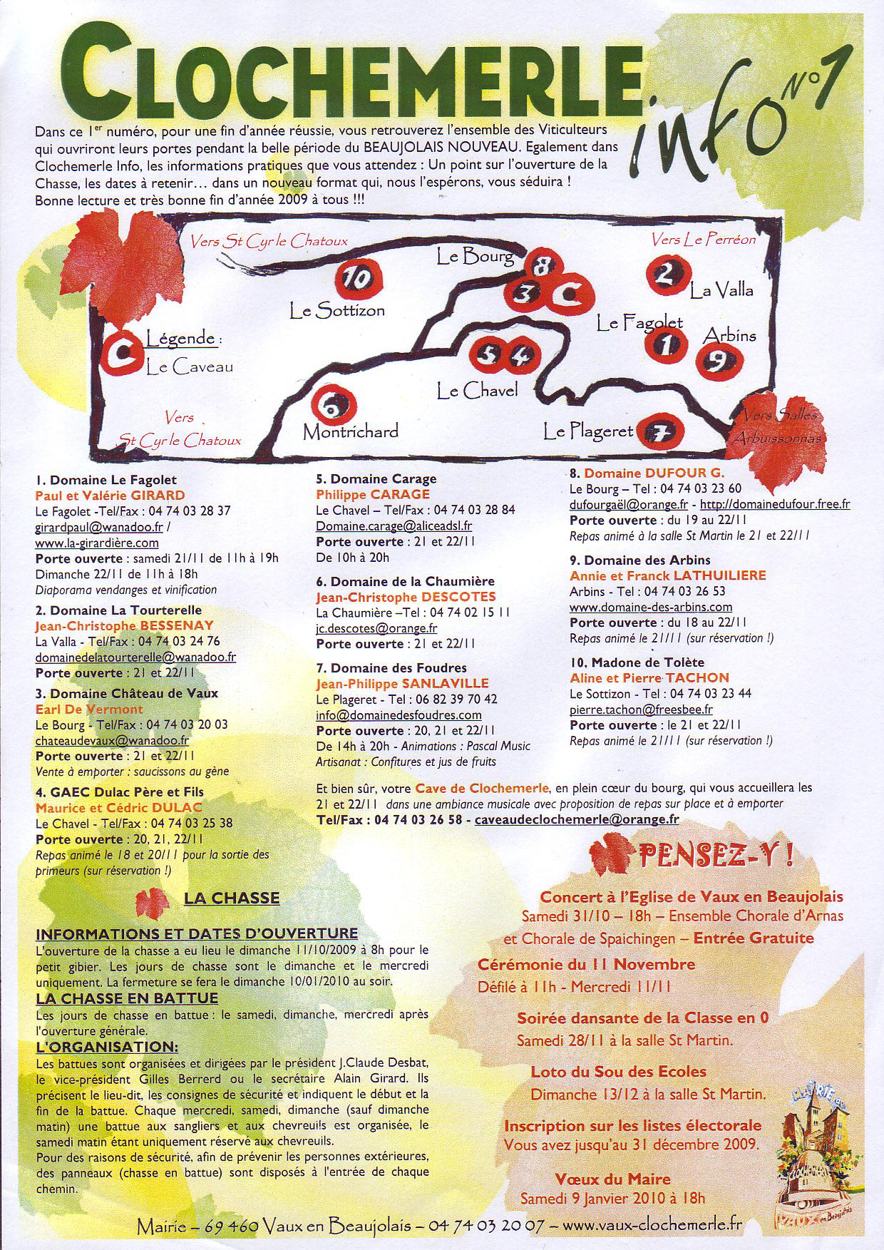 Réalisation d'une page de communication pour la commune de Vaux en beaujolais "Clochemerle" - Parution trimestrielle regroupant les rencontres, évenements et dates importante sur la commune.